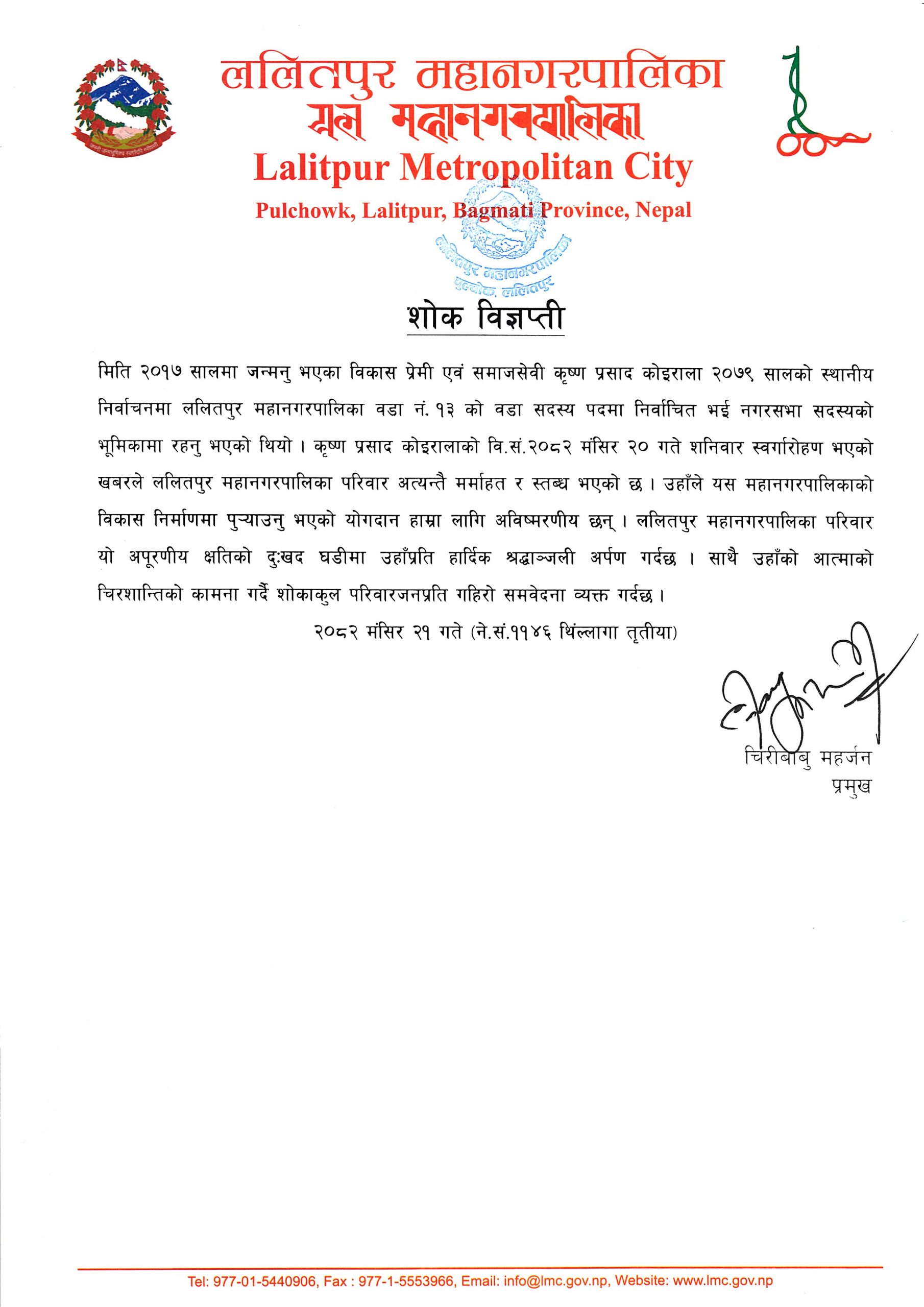 "ललितपुरको समृद्धि र सुशासनको आधार: सम्पदा, संस्कृति सहितको स्मार्ट सेवा र पूर्वाधार"